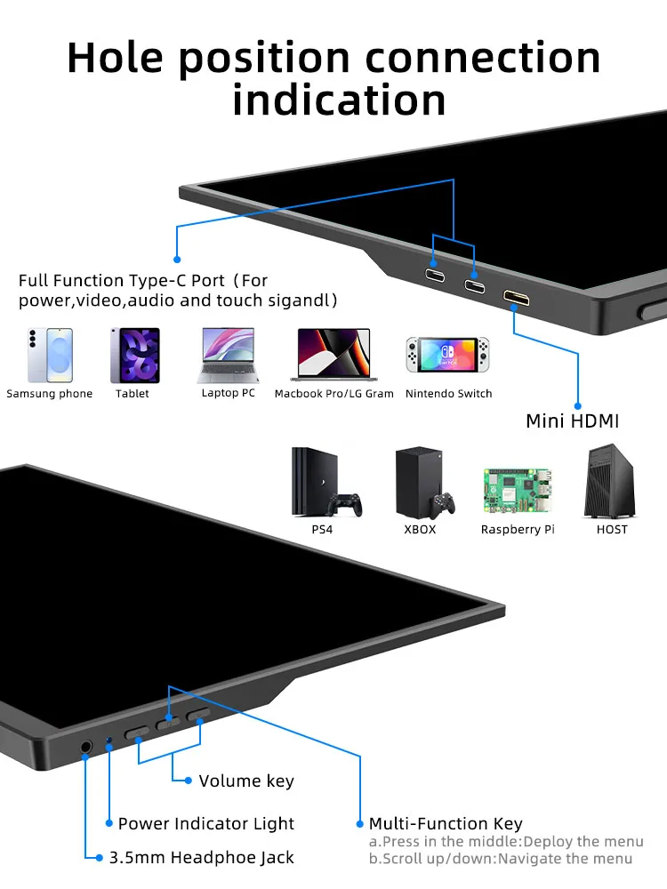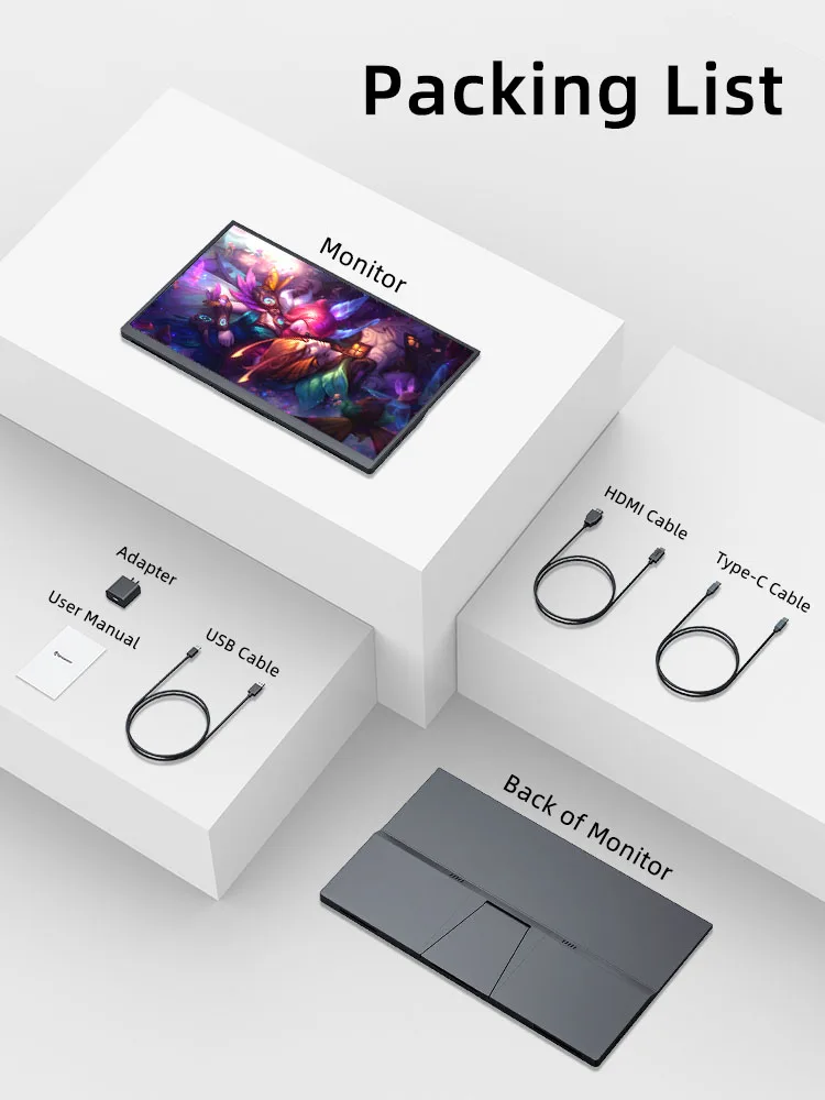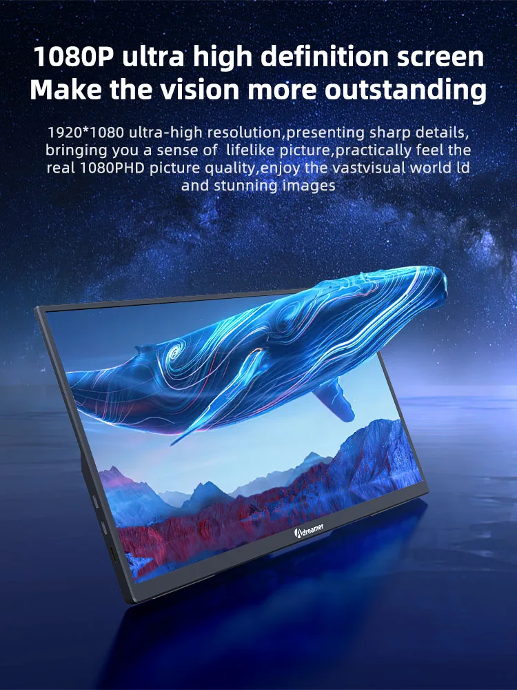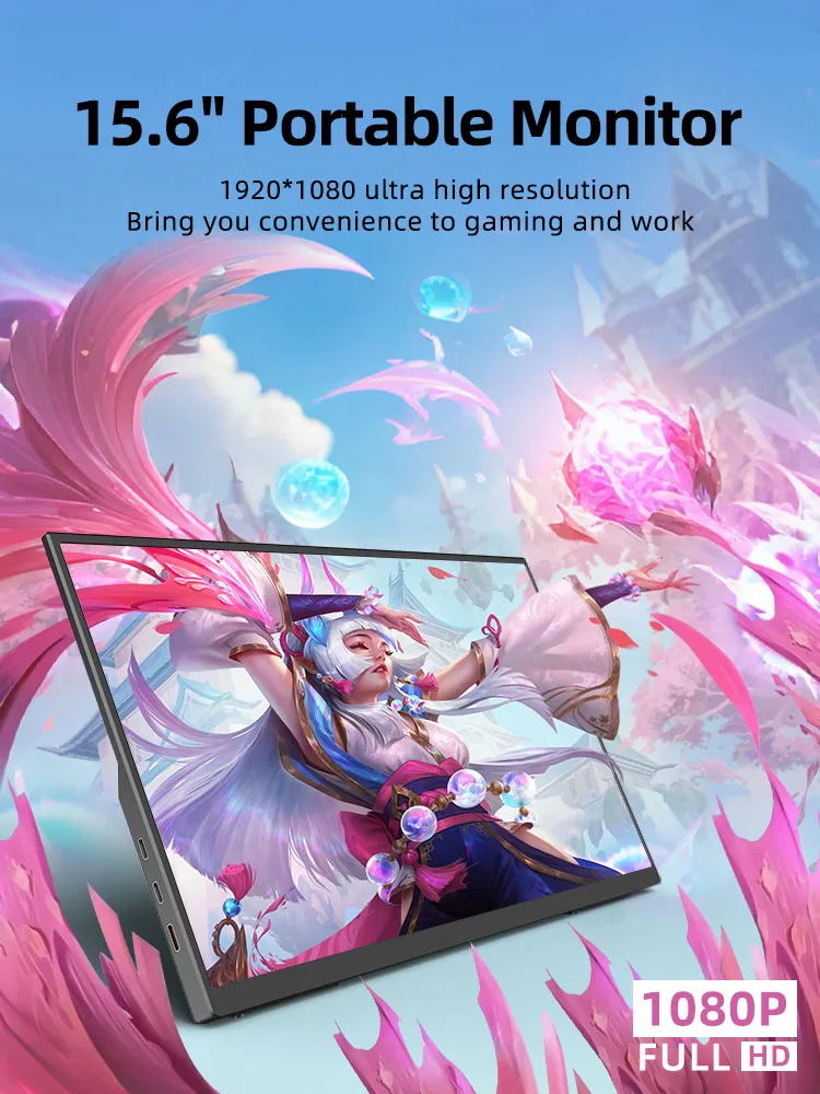 Adreamer monitor portátil de 15.6 polegadas 1920*1080 60hz para laptop xbox ps4/5 switch tv box telefone celular pc extensão loptopAdreamer monitor portátil de 15.6 polegadas 1920*1080 60hz