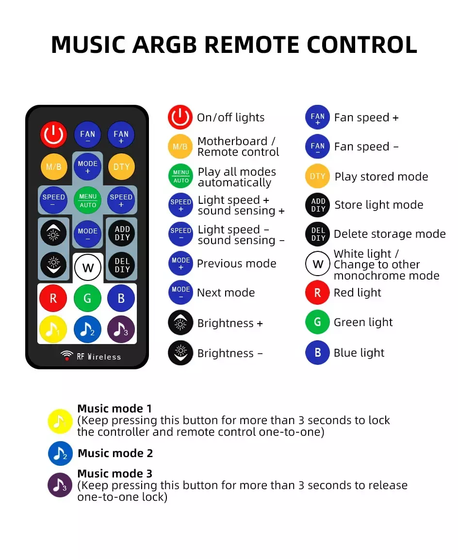 Música mode2: todas as luzes do ventilador no modo monocromático e modo de cor fantasma mudam aleatoriamente