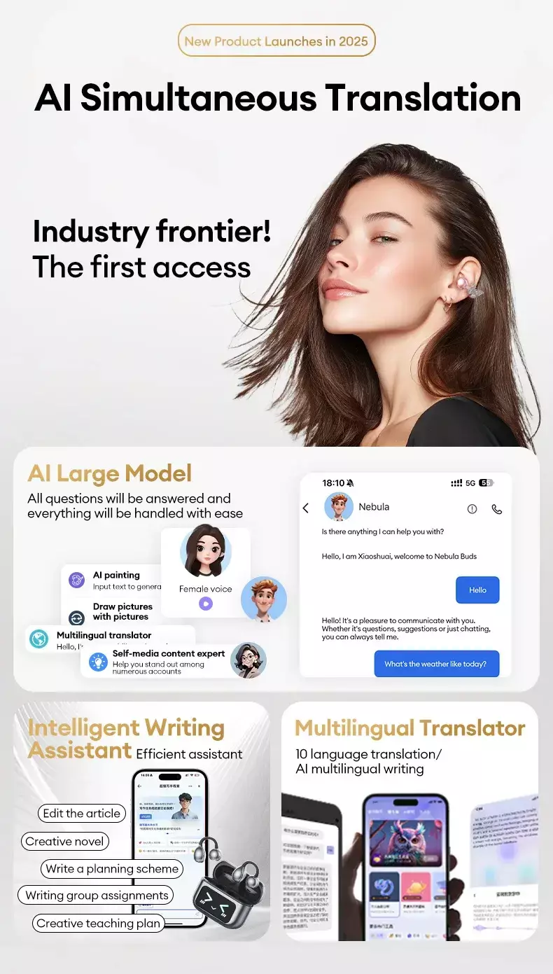 Os Fones de Ouvido AOC 3521 OWS vêm equipados com tecnologia de tradução AI, tornando-os perfeitos para viajantes, estudantes de idiomas e profissionais que lidam com comunicação internacional. Com a capacidade de traduzir instantaneamente idiomas estrangeiros, você pode ter conversas em tempo real sem barreiras linguísticas, ampliando suas possibilidades de interação e conexão.