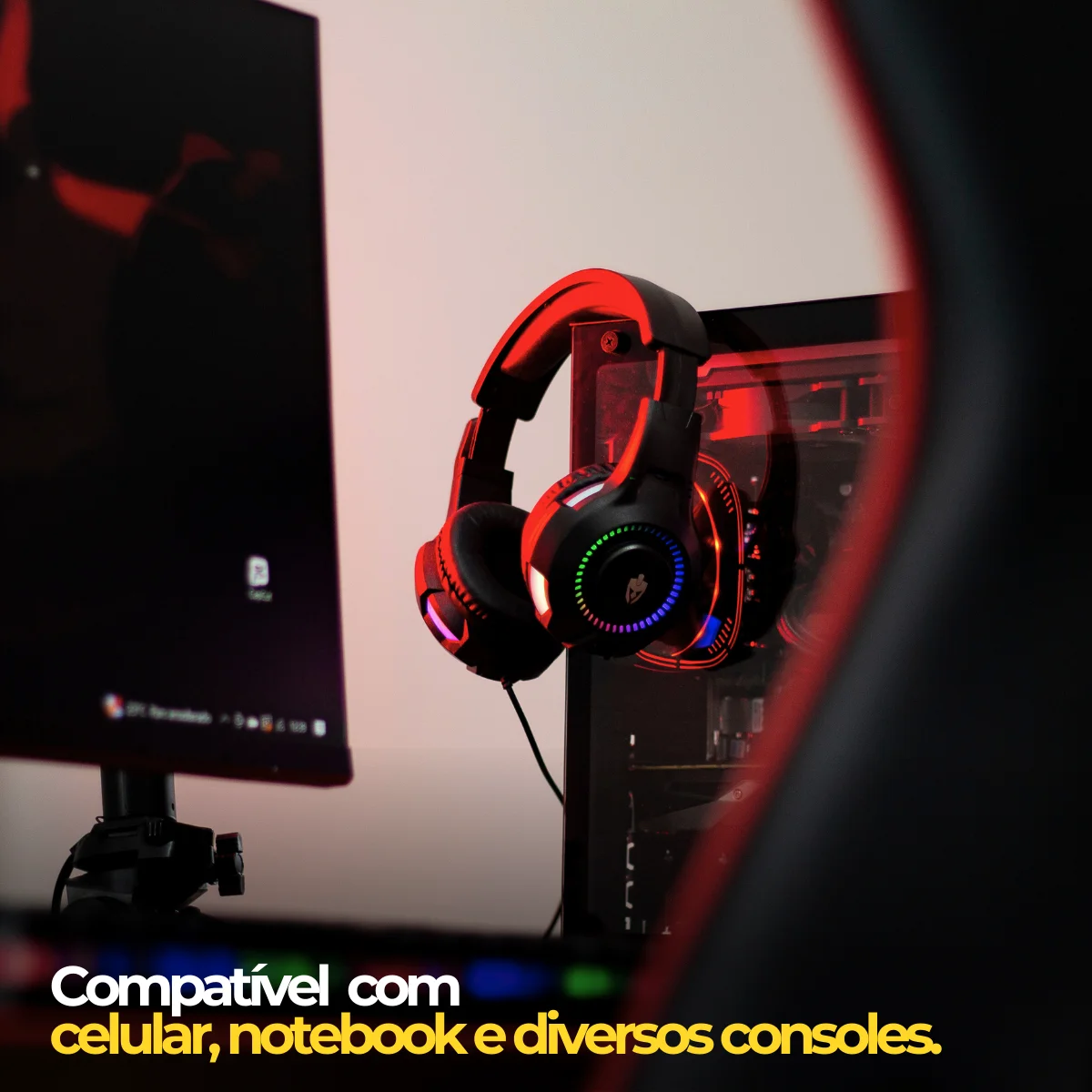 ?LED brilho RGB projetado no fone de Ouvido, destacando a atmosfera do jogo;
