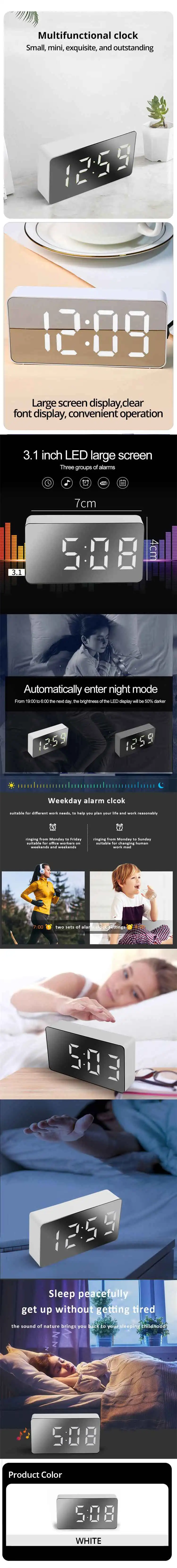 LED Branco Espelho Relógio De Mesa Snooze Exibição Hora Da Noite Luz Desktop