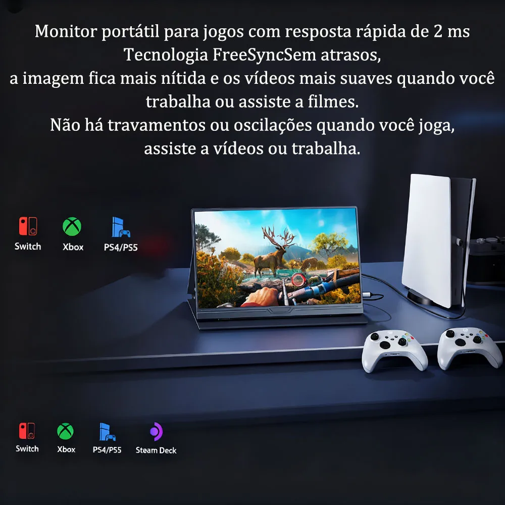 [Monitor plug-and-play] Com duas conexões USB Type-C totalmente funcionais e uma porta Mini HDMI, pode ser usado com laptop, Mac, Mini PC, computador, Xbox, PS5, Switch, Steam Deck, etc.Nenhuma configuração ou download é necessário.Perfeito para os jogadores desfrutarem dos jogos, também para os empresários treinarem outras pessoas ou trabalharem em casa.