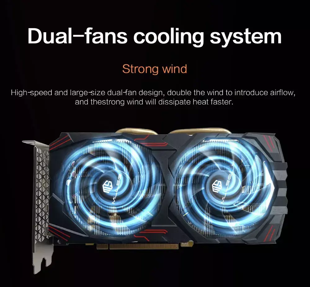 Design de ventilador duplo de alta velocidade e tamanho grande, o dobro do vento para introduzir o fluxo de ar e o vento forte dissipará o calor mais rapidamente.