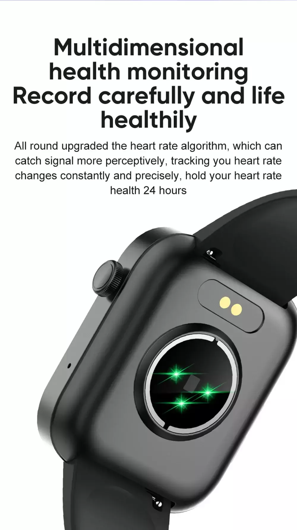 Registro de atividade (passos, calorias, distância), objetivo esportivo, 100 + modos de exercício, relatório de dados esportivos, IP68 à prova d'água.