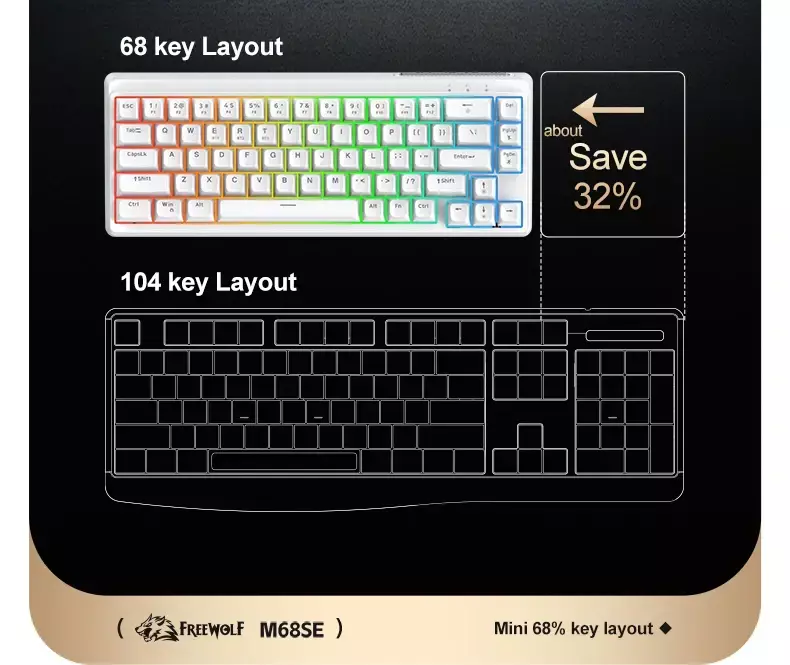 🚀 Design ergonômico: As teclas esféricas do Teclado FREEWOLF M68SE foram projetadas para oferecer um toque suave e confortável durante longas horas de jogo. Além disso, os pés duplos garantem estabilidade e ajuste de altura para uma experiência personalizada.