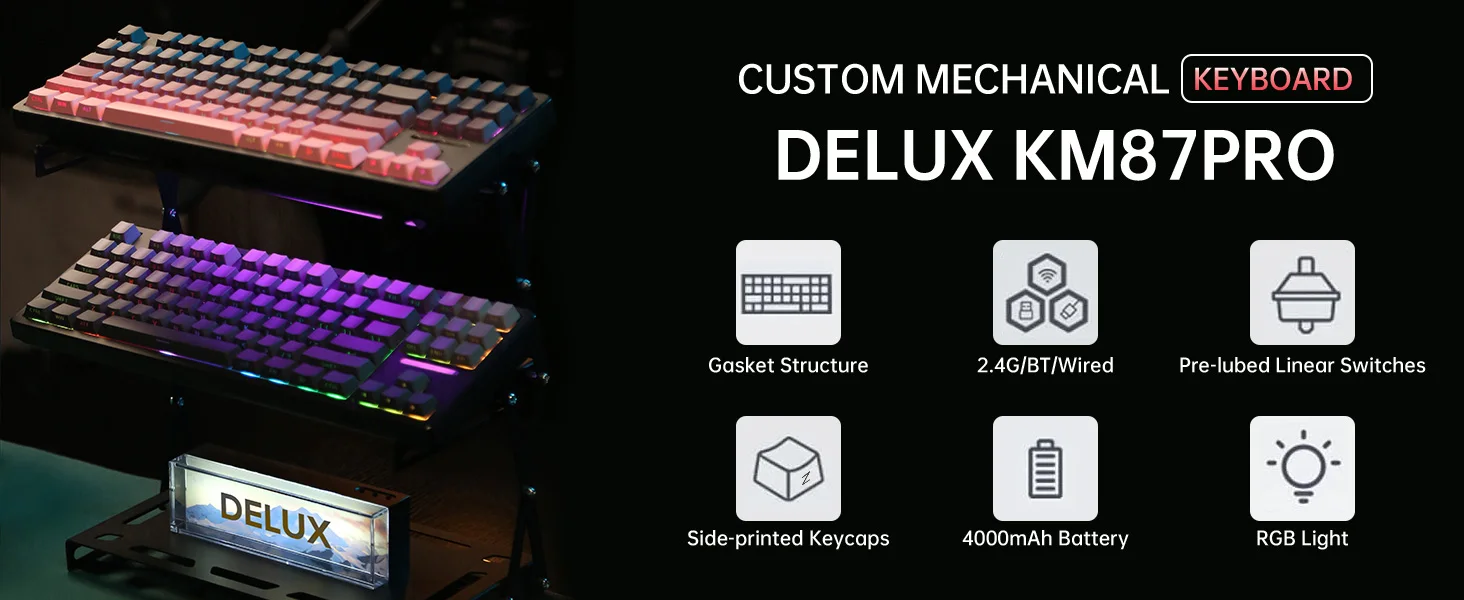 Delux KM87PRO - Teclado Mecânico Gamer Sem Fio