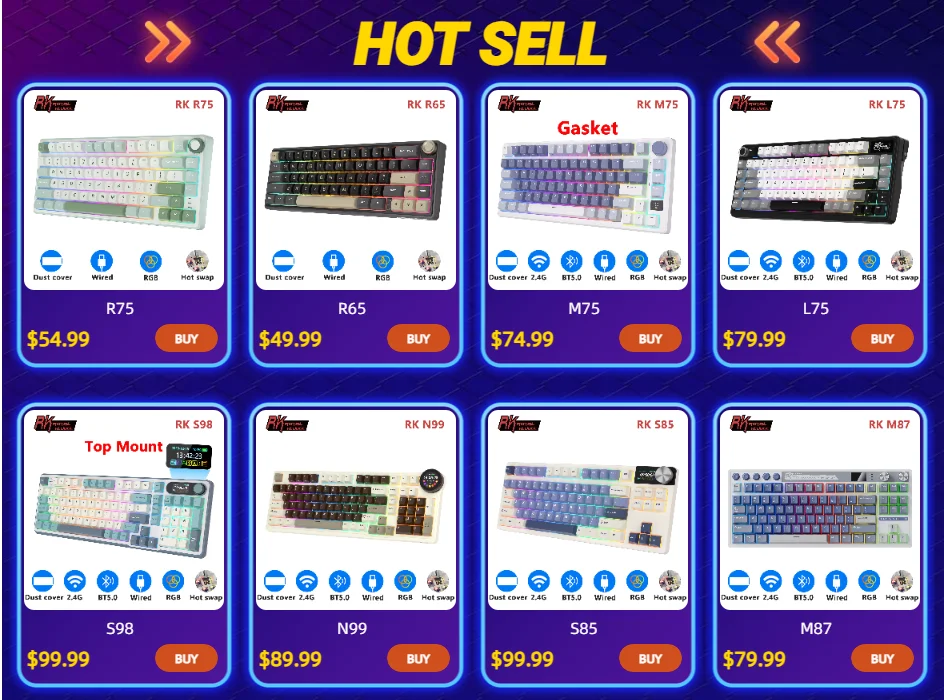 7.Hot-swappable - Hot-swap PCB allows you to replace 3 pins/5 pins switches freely without soldering issue. Enjoy the fun of making your own unique keyboard.