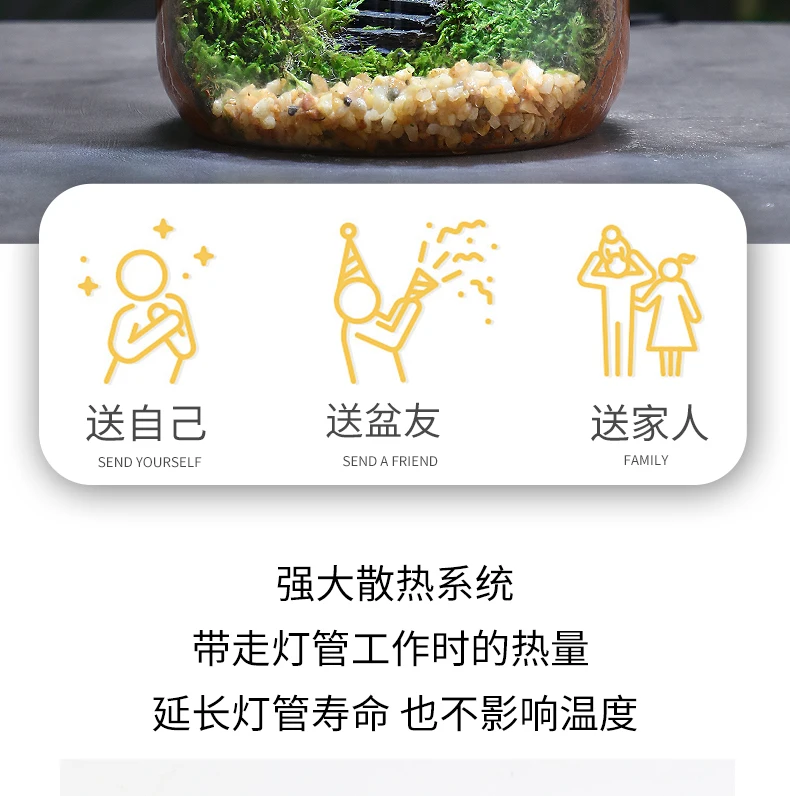 Iluminação eficiente e ajustável: Nossa luz LED de cultivo é perfeita para pequenas plantas e mini aquários.Você pode alternar facilmente entre os modos de iluminação para fornecer a quantidade certa de luz para suas suculentas ou musgos.A iluminação ajustável e a base de luz giratória permitem controlar a ventilação e a umidade dentro do frasco, o que é especialmente útil para plantas que requerem alta umidade.